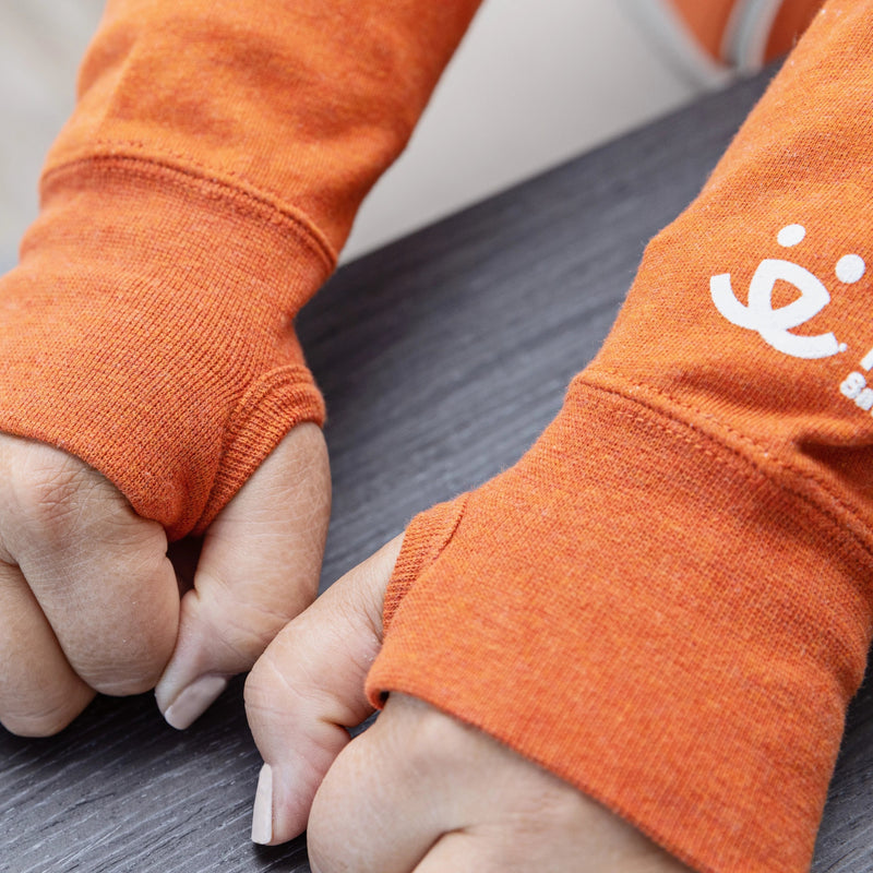 Love this hoodie. It fits well and the color is great I just wish the thumb holes were a little bigger.