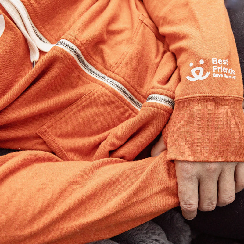 Thank you for taking the time to leave a review for our Essential Zip Up hoodie. We are delighted to hear that you find it comfortable and well made. We take pride in our products and it's great to know that you love the color and our best friends logo. And thanks for all your support as we work together to make the US No Kill by 2025!