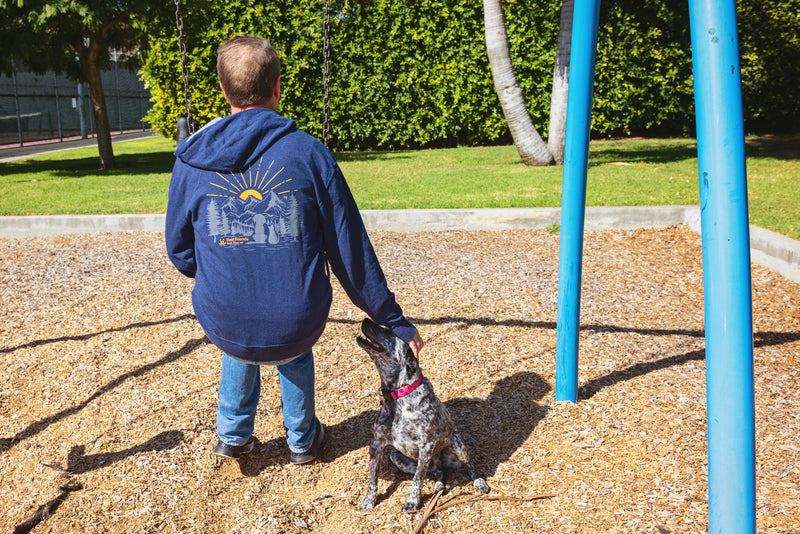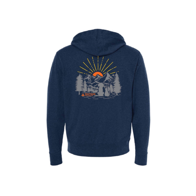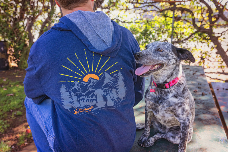 Rise and shine in the new navy blue Sunrise Zip Up! Made from a comfortable blend of 70% cotton and 30% polyester, this navy zip up will keep you warm and stylish while you explore the great outdoors with your best friend. Featuring a stunning sunrise design and the logo of Best Friends Animal Society, this zip up is the perfect way to show off your love and support for the animals!