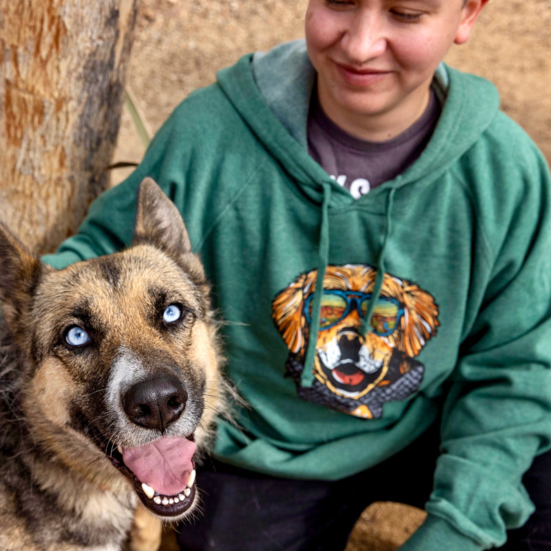 Anyone that’s traveled to the Sanctuary knows that we are fortunate enough to have jaw-dropping landscapes and views around every corner. Some of our most popular are the views of Angel Canyon from the Village Café, and the Disney Barn nestled in the horse pastures. Wild Tribute collaborated on artwork with Best Friends, which led to a design featuring sweeping canyon views and the animals we love. Wild Tribute created their first cat design, a perfect match for their famous Maximus dog rendition.