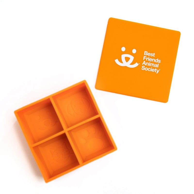 Each tray creates four large ice cubes, each featuring a custom-molded design inspired by Best Friends' signature icons: a dog, a cat, a paw print, and the Best Friends logo.
