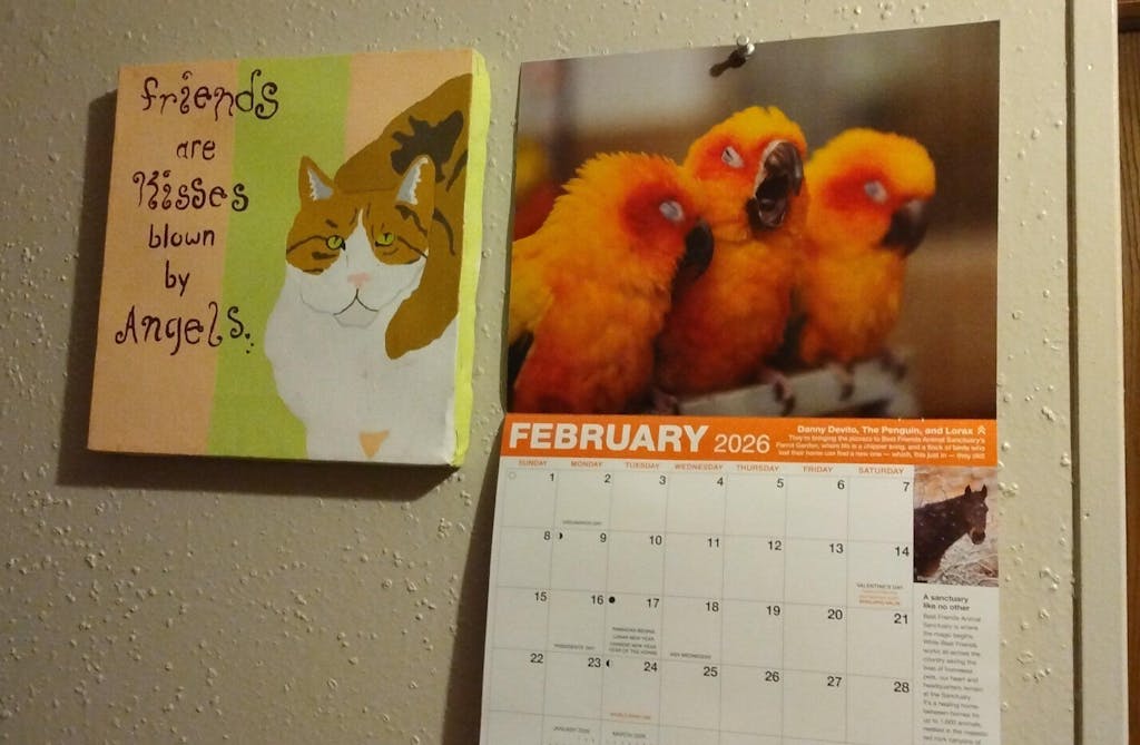 Hi there! Thank you so much for your kind words about our 2026 Best Friends Membership & Calendar. We're thrilled to hear that you love it and that the featured animals and photos bring joy to your space and days. How special that it has a spot next to your niece's painting of your first kitty, Dylan. We hope you continue to enjoy the calendar throughout the year. Thank you for being a part of our Best Friends community! -Kim