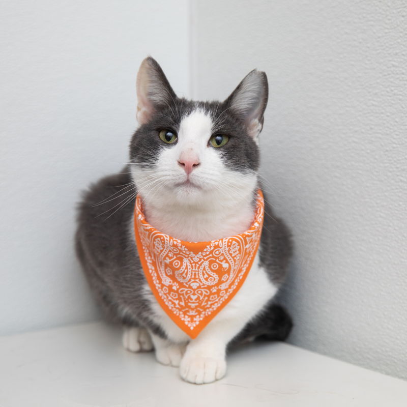 Add a pop of color and kindness to your pet’s look with the signature Paisley Pet Bandana. Made from soft, lightweight cotton, this bright orange bandana features the iconic Best Friends logo woven into a playful paisley print.