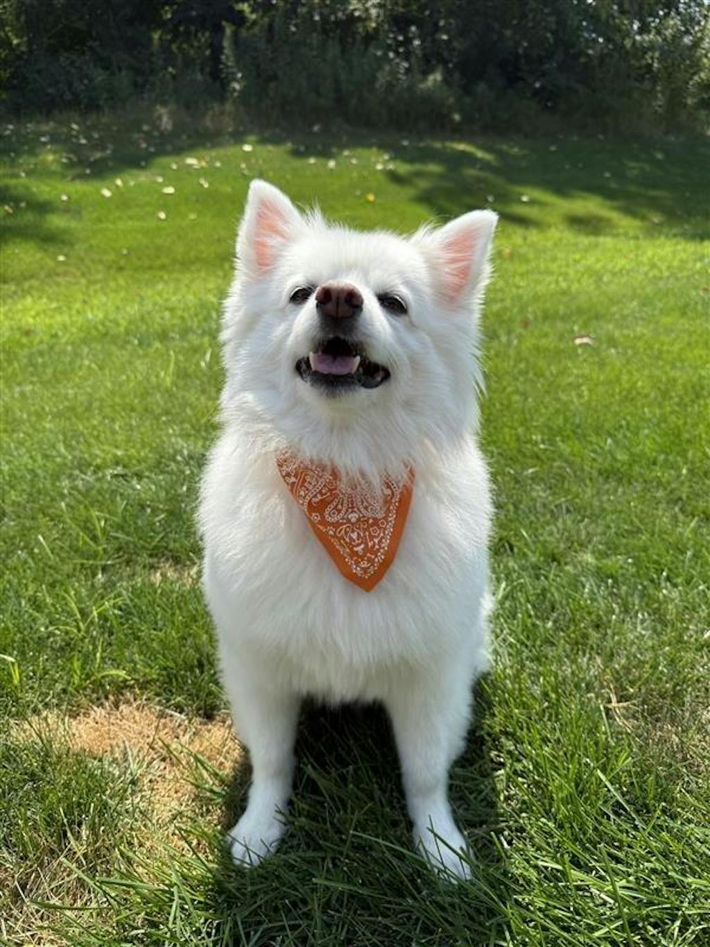 Hi there! Thank you for leaving a review for our Paisley Pet Bandana. We're so glad to hear that you found the design adorable and that the small size worked well for your American Eskimo. We hope your furry friend enjoys wearing our bandana! -Kim
