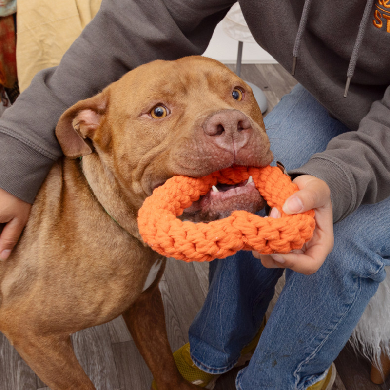 Our dog loves rope toys and we thought this would be a good option for him. The heart broke apart pretty quickly so now it's a long rope; however that doesn't stop him from playing with it. We are happy to support Best Friends.