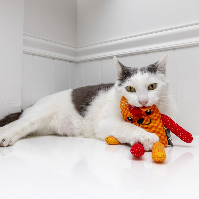 My two cats have a ball with this large catnip cat. They play and through it up all over. Play with it for hours! Love it!