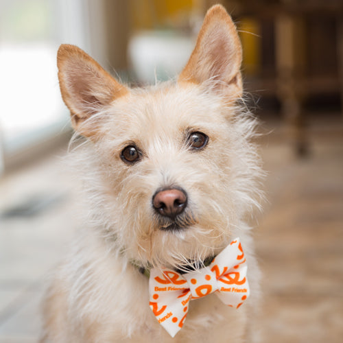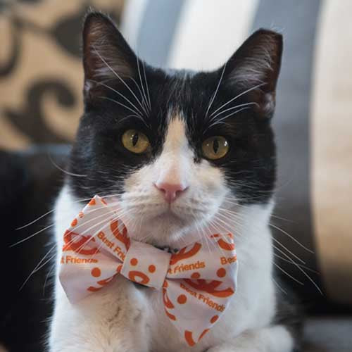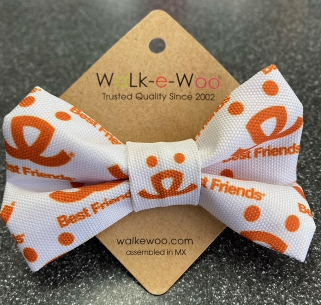 Your pets are already adorable, but give them bowties and the cuteness reaches new heights. The white bowties are adorned with orange Best Friends' logos. Velcro closure for safe and easy wear and removal.