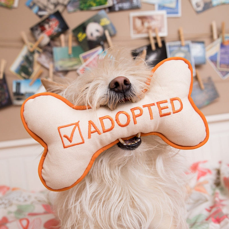 Thank you for your review Barbara! We are so happy to hear that Dot loved her 'I'm Adopted Dog Toy'. Wishing you and your furry family members many more happy playtimes together! Best, Shanda