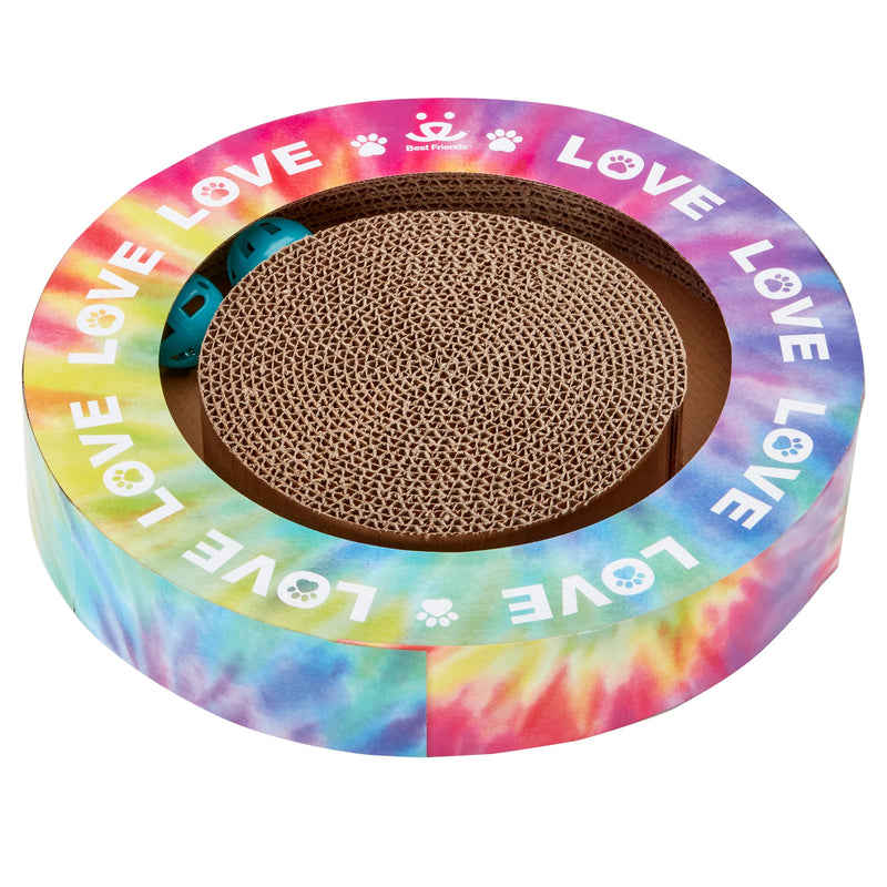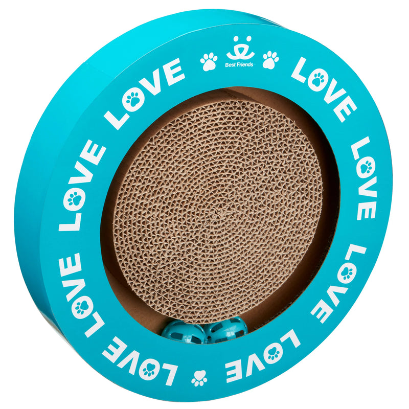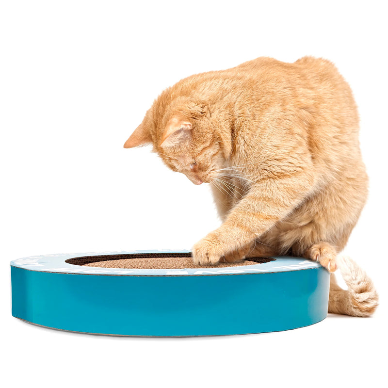 The cats loved it - but I caught one cat tearing off the outer blue cardboard and swallowing small pieces of it. Since this part of the scratcher is colored (presumably with some sort of dye) - I felt it wasn't safe and had to throw it away. I kept the balls which they play with. So, unfortunately, unless there is some assurance that this product is safe if cats start to ingest any of it, I can't really recommend it - especially for young cats - perhaps an older cat would not try to ingest the cardboard.