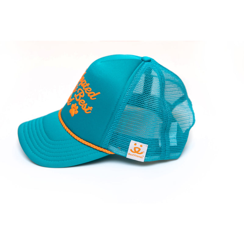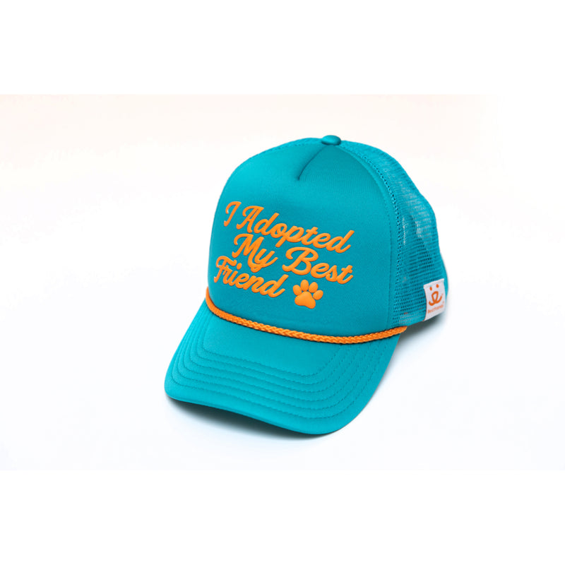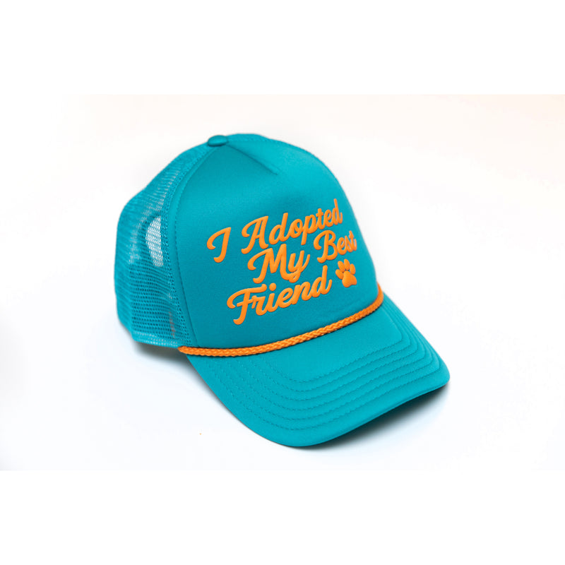 Celebra la adopción con esta vibrante gorra de camionero turquesa, con la inscripción "I Adopted My Best Friend" en letras naranjas audaces y un adorable detalle de huella de pata. Su ajuste ajustable y la parte trasera de malla transpirable la hacen perfecta para cualquier aventura, ¡y demuestra con orgullo tu amor por tu mascota adoptada!