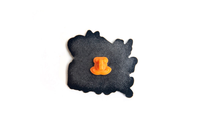- Clutch de PVC naranja con forma de pin y logo de Best Friends