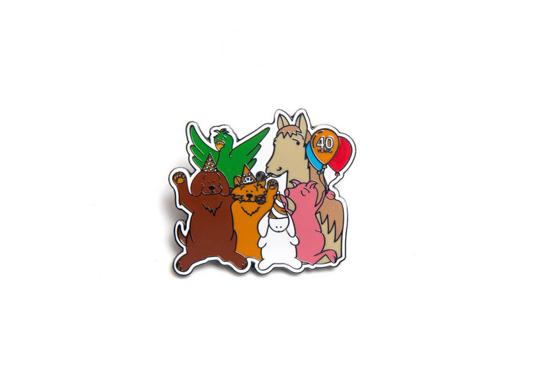 Celebra 40 años salvando vidas con nuestro exclusivo pin esmaltado. Un artículo de colección para todos los amantes de los animales, ya seas miembro de la familia Best Friends desde hace mucho tiempo o te unas a nuestra causa, este pin es imprescindible para cualquier amante de los animales.