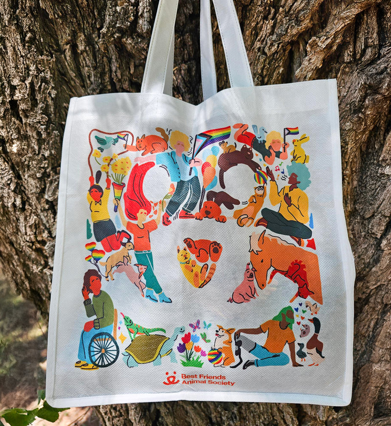 Un sincero reconocimiento a Raf, el talentoso artista y exmiembro del equipo de Best Friends, creador del diseño del bolso Pride Tote de este año. También agradecemos a nuestro panel de revisión y votación LGBTQ+, compuesto por 13 miembros del equipo, por sus contribuciones.