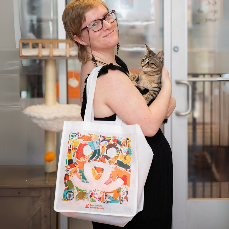 En Best Friends, celebramos las invaluables contribuciones de la comunidad LGBTQ+ al bienestar animal, tanto dentro como fuera de nuestra organización, a medida que avanzamos en nuestra misión de salvar vidas y reafirmamos nuestro compromiso con una cultura basada en la diversidad, la inclusión y la pertenencia. Honramos a nuestro personal, voluntarios, donantes y a la comunidad LGBTQ+, quienes fortalecen nuestra labor.