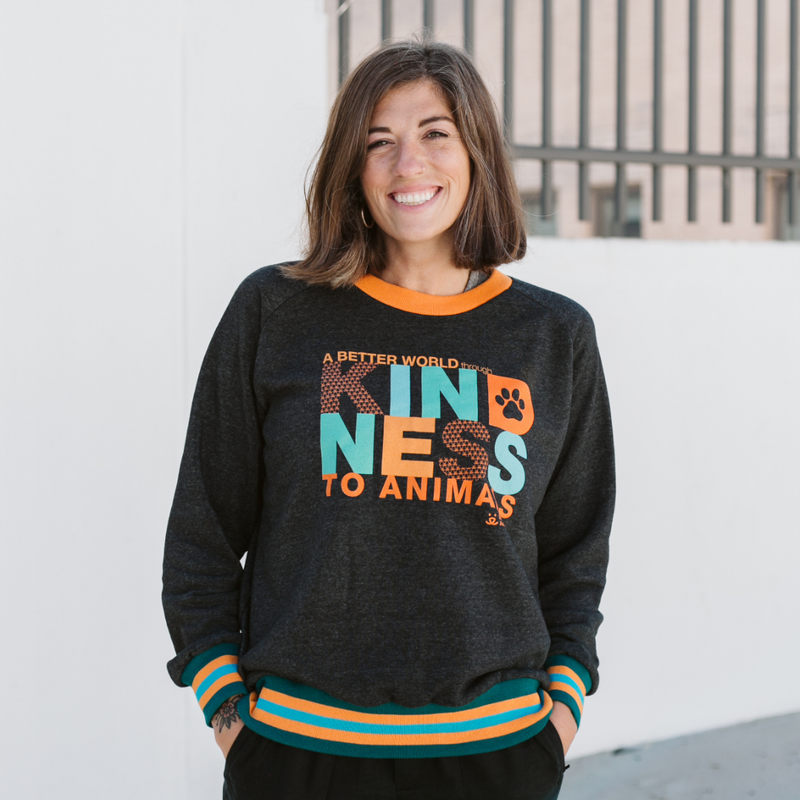 Difunde amabilidad con estilo con la camiseta de cuello redondo inspirada en la universidad "Kindness to Animals". Esta marca, propiedad de una mujer, es conocida por crear prendas que inspiran bienestar, conexión, compasión y comunidad. Confeccionada con tela suave y duradera, esta acogedora sudadera luce un llamativo estampado abullonado que comparte con orgullo el mensaje: Un mundo mejor a través de la bondad hacia los animales.
