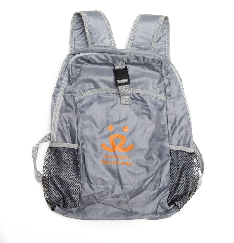 Una mochila plegable y ligera con el logotipo de Best Friends está hecha de poliéster resistente, lo que garantiza una larga duración. Ideal para viajes, para estudiantes y para excursiones con tu cachorro, esta mochila cuenta con un amplio compartimento principal con cierre de cremallera para guardar lo esencial y un bolsillo interior adicional para guardar dispositivos electrónicos de forma segura. También cuenta con dos bolsillos exteriores de malla para llevar botellas de agua y snacks (o golosinas), un bolsillo frontal con correa y cierre de hebilla de plástico, y correas ajustables reforzadas para un transporte cómodo.