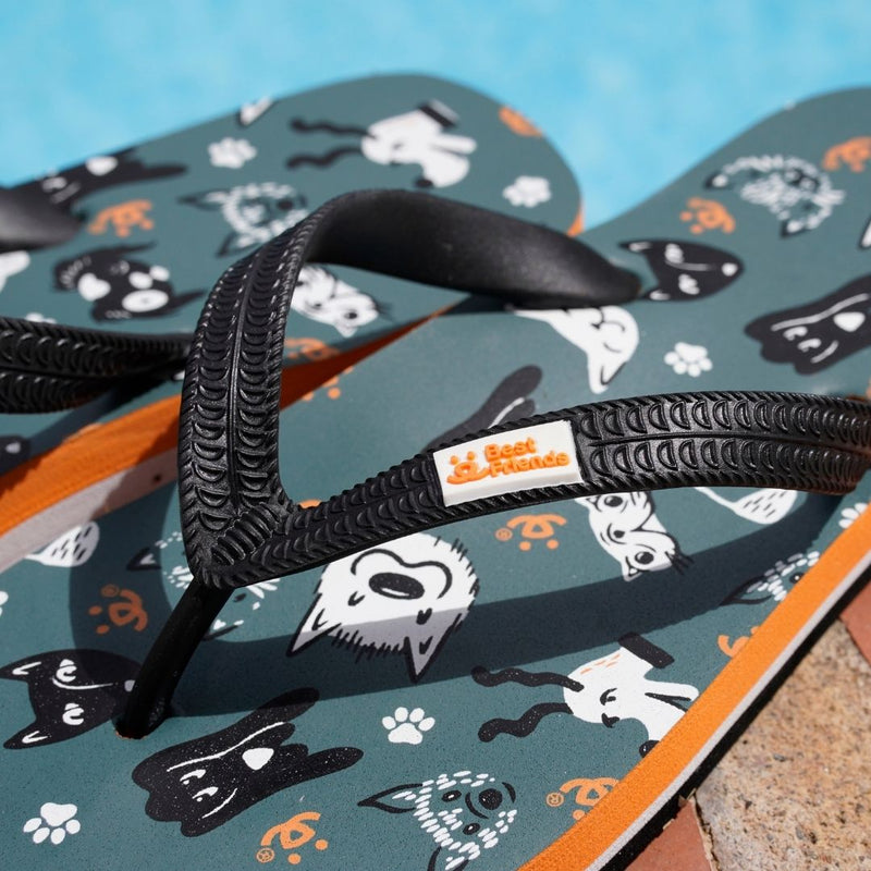 ¡Sal con estilo y comodidad mientras demuestras tu amor por los animales con nuestras exclusivas chanclas Best Friends! Con un divertido estampado integral de adorables caritas de perros y gatos, huellas de patas y el icónico logo de Best Friends, estas chanclas son perfectas para los amantes de los animales que siempre están en movimiento.