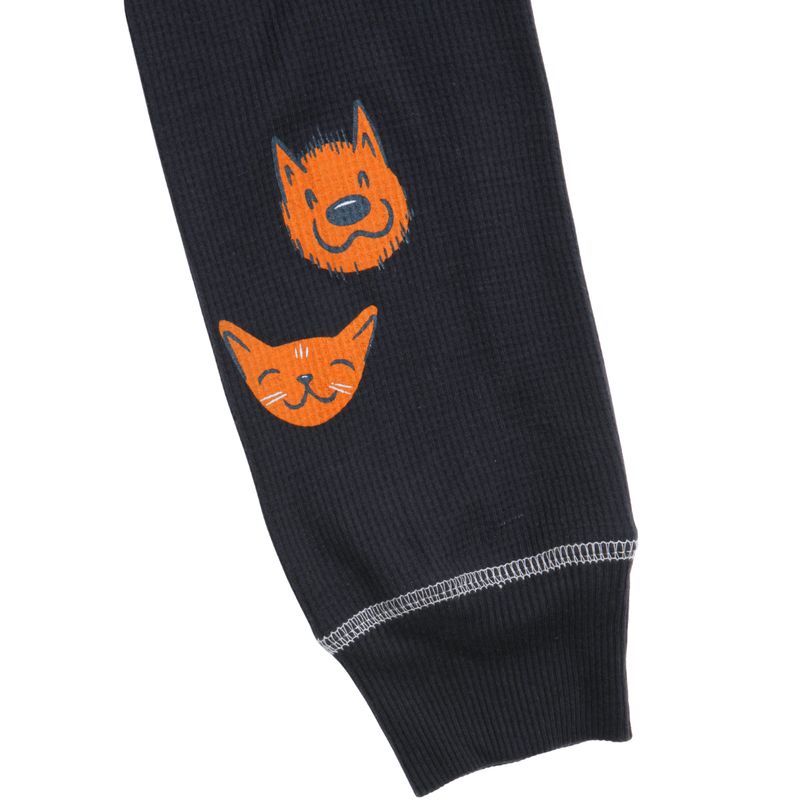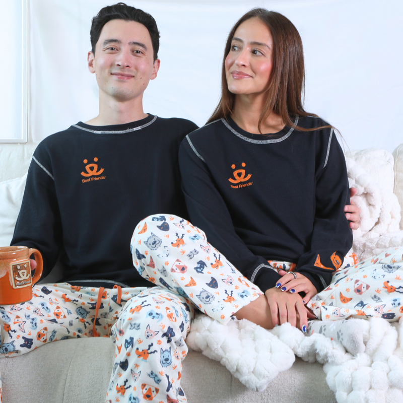 Stay warm and cozy while showing off your love for the animals in this classic thermal top. Featuring a pocket-sized Best Friends logo and an adorable furry friend dog-and-cat design down the sleeve, this piece is equal parts comfy and cute.