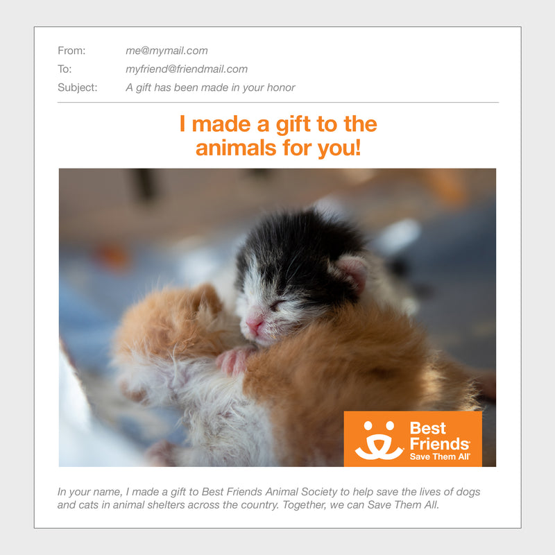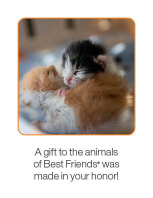 Tus donaciones del catálogo apoyan la labor de Best Friends Animal Society y ayudan a salvarlos a todos. Para ayudar al mayor número posible de animales necesitados y asegurar que tu donación sea lo más beneficiosa posible, se combinará con otras donaciones para ayudar a salvar vidas de animales.