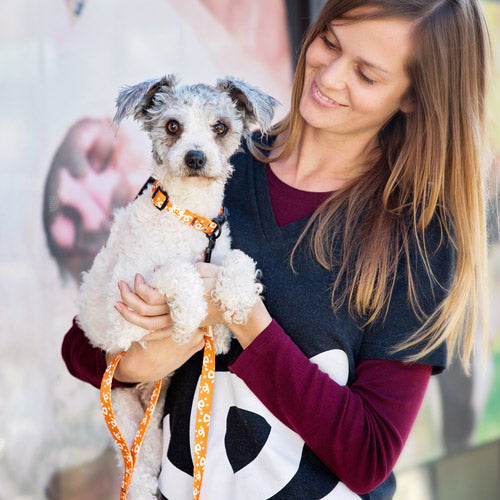 Ahora usted y su perro pueden mostrar con orgullo su apoyo para salvar a las mascotas sin hogar con este elegante collar para perros de color naranja cubierto con el logotipo de Best Friends Animal Society.