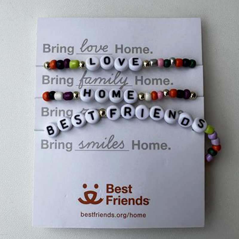 I love the bracelet. I’ve been wearing these kind of bracelets and so happy to have the set from Best Friends. Unfortunately, when I was taking the bracelets off, the one that says Best Friends broke. I was fortunate to find all the beads except the S in Best Friends. I’m hoping to find someone who makes bracelets and can fix mine. I didn’t want to tell you as I see my purchase of the bracelet as a donation and I’d live with the two remaining bracelets. But receiving your inquiry, I thought I’d mention what happened. Meanwhile I love the set and knew I would when I purchased them.