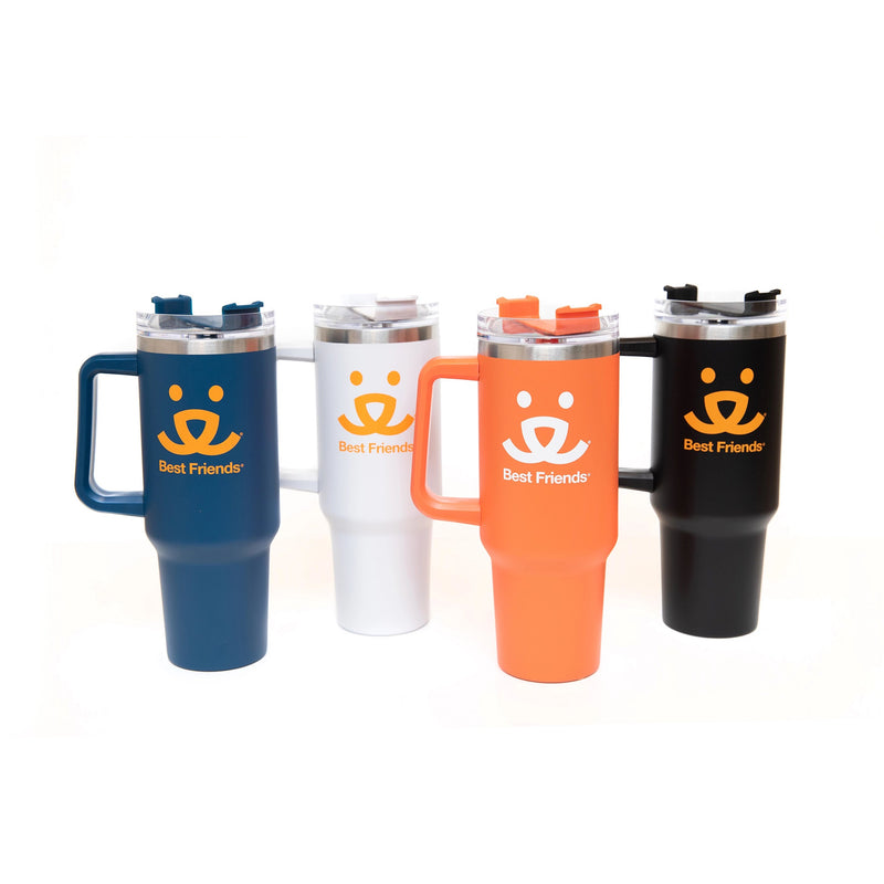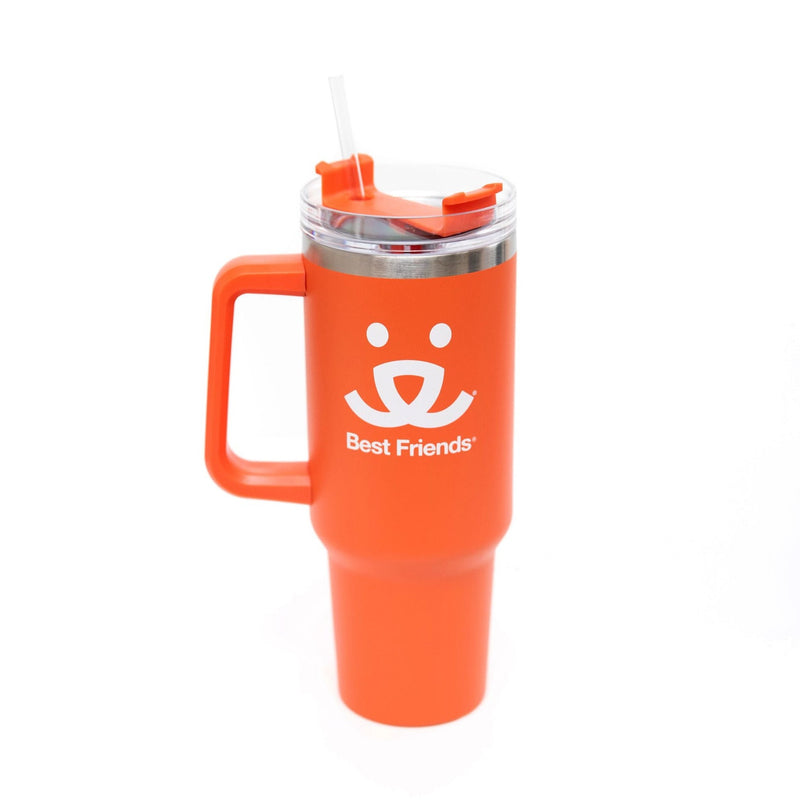 I love my tumbler. Plus, orange is already my favorite color. I had the first Honda car made and it was bright orange. It holds 1.2 liters with a really large straw. My Dr. is always getting on me about not drinking enough water. My lab tests always show that I'm dehydrated. Not anymore. The tumbler makes it easy to get large volumes in. Plus, it keeps it extremely cold. Great purchase from a great organization.