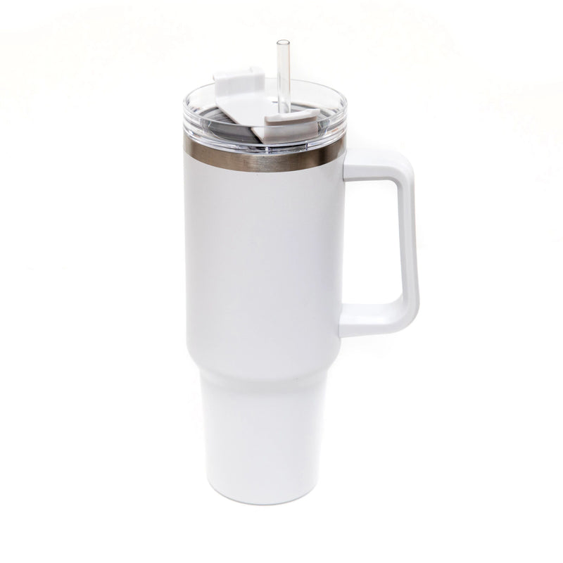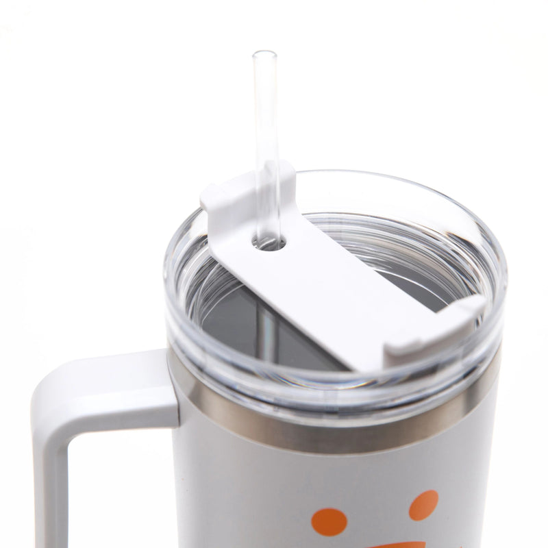 I always use at least a 40 oz. water tumbler and I especially like the handle and that im advertising this fantastic rescue! I've been using the straw but - maybe because I have grey hair - I can't figure out how to get the other 2 drinking options from the lid? If I turn the top piece it just takes the whole lid loose.