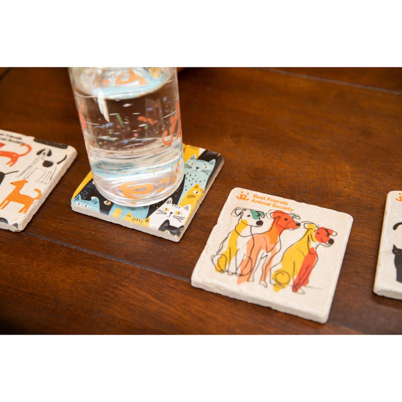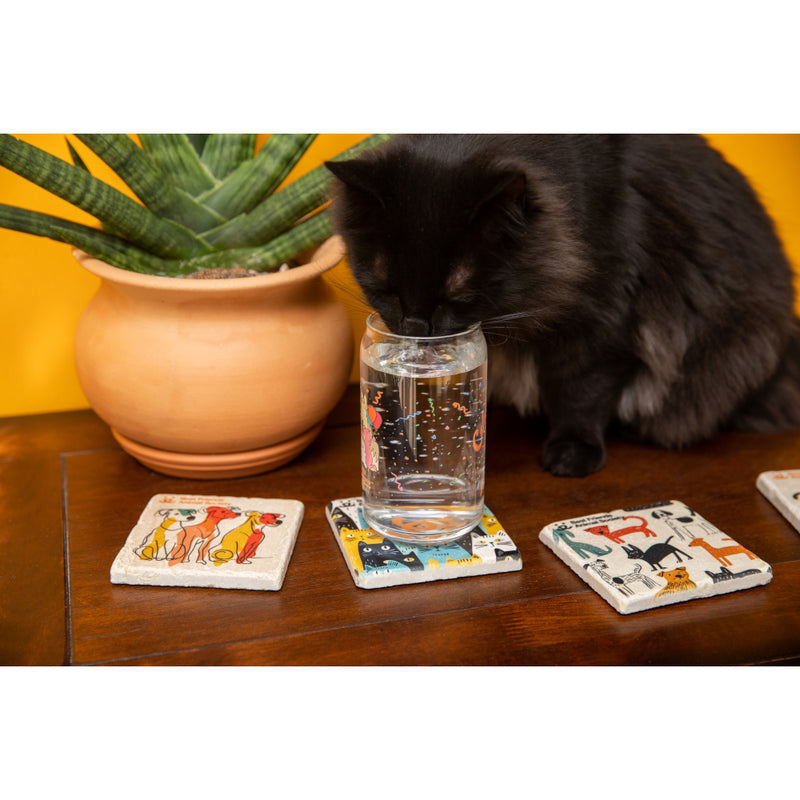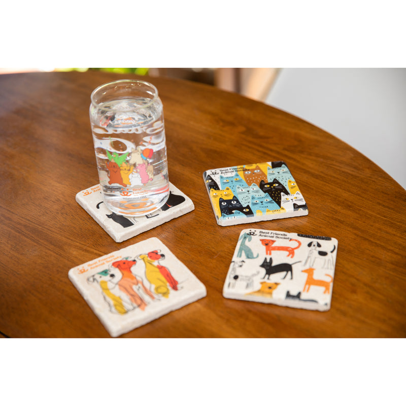 ¡Protege tus superficies con nuestros posavasos de mármol! Con encantadoras ilustraciones de gatos y perros, estos posavasos son funcionales y un excelente tema de conversación.