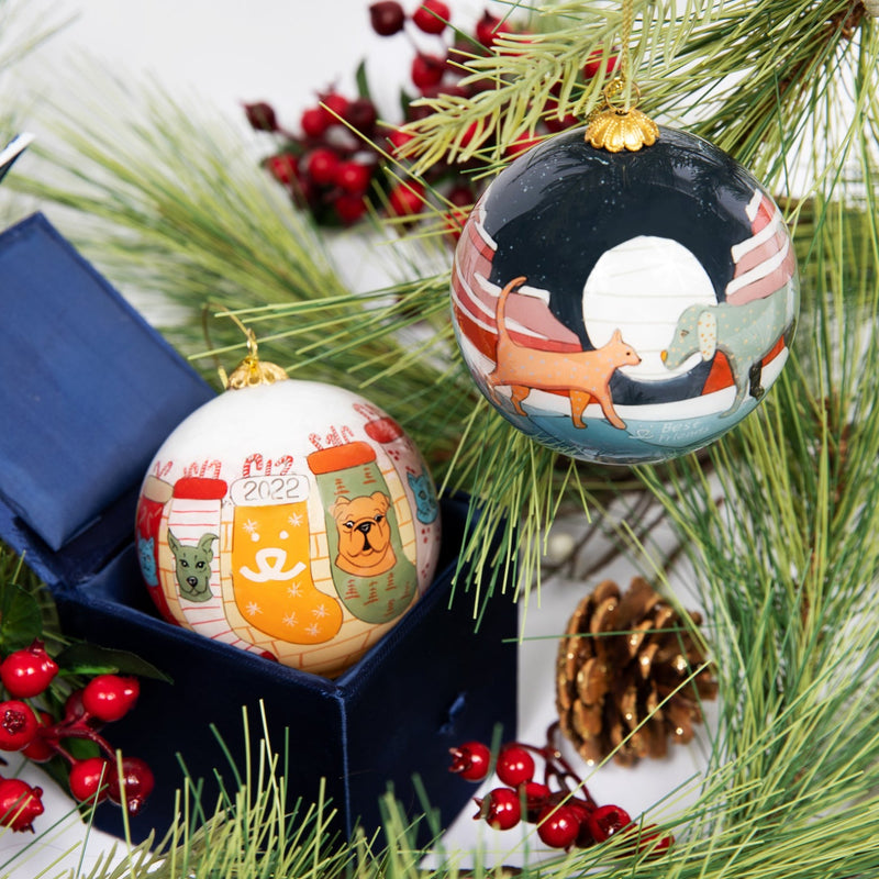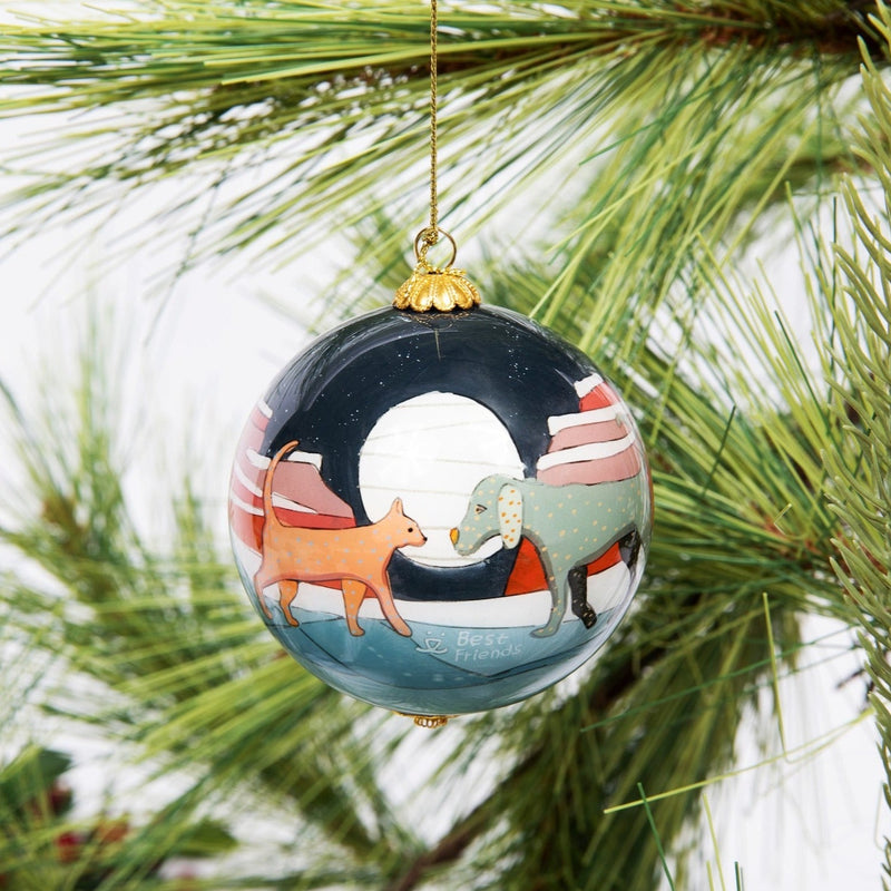 ¡Demuestra tu amor por los animales este invierno! Este hermoso adorno de vidrio es un homenaje a los animales que ayudas a salvar y a los hermosos cañones de roca roja del Santuario de Animales Best Friends. Está pintado a mano y viene en una caja de regalo de cortesía. ¡Perfecto para coleccionar, decorar y regalar!