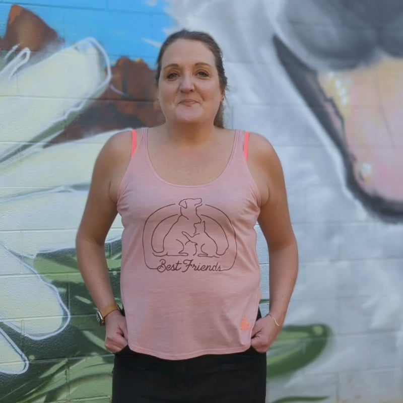 ¡Descubre esta camiseta de tirantes de mezcla de algodón para mujer con nuestro sello de aprobación de dos mejores amigas! Es elegante y cómoda, con escote redondo y bajo festoneado. Hecha con una suave mezcla de algodón, se ajusta a la perfección y se siente increíble en la piel. Esta versátil prenda es perfecta para cualquier ocasión informal.