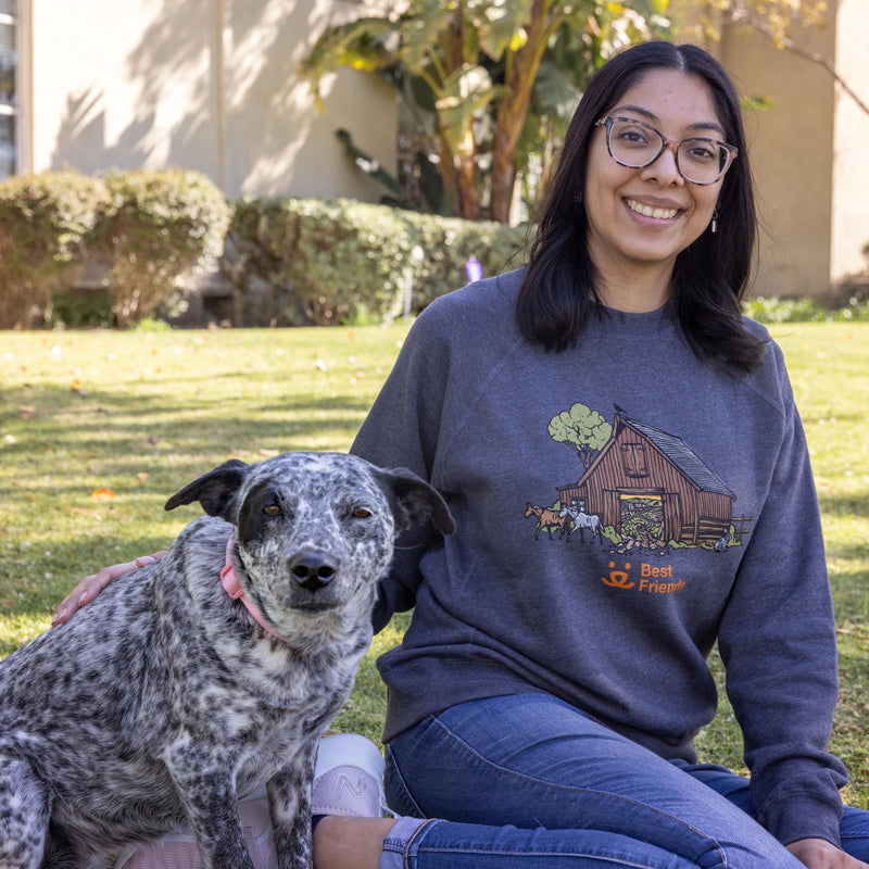 Nos alegra mucho saber que la persona a la que regalaste tu regalo quedó encantada con su nueva sudadera de cuello redondo Wild Tribute Barn. ¡Gracias por apoyar a los animales de Best Friends Animal Society con tu compra!