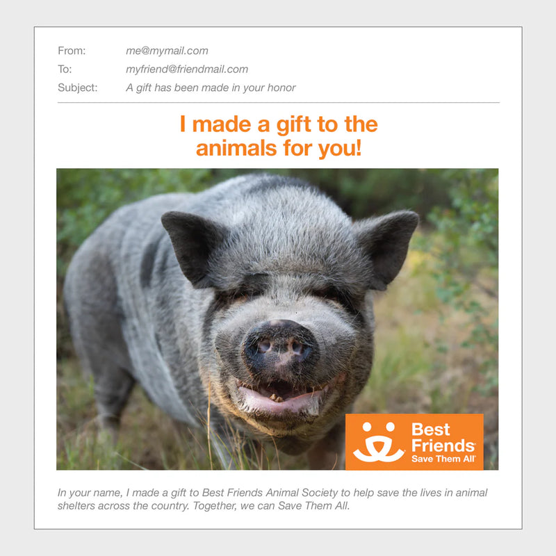 Tu donación de patrocinio apoya la labor de Best Friends Animal Society y contribuye a salvarlos a todos. Para ayudar al mayor número posible de animales necesitados y asegurar que tu donación sea lo más beneficiosa posible, se combinará con otras donaciones de patrocinio para ayudar a salvar vidas de animales.