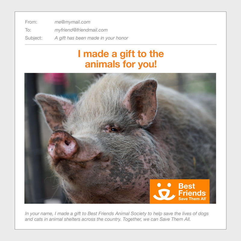Tu donación de patrocinio apoya la labor de Best Friends Animal Society y contribuye a salvarlos a todos. Para ayudar al mayor número posible de animales necesitados y asegurar que tu donación sea lo más beneficiosa posible, se combinará con otras donaciones de patrocinio para ayudar a salvar vidas de animales.