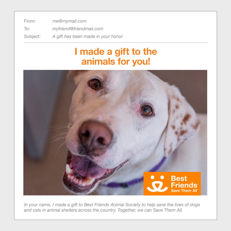 Tu donación de patrocinio apoya la labor de Best Friends Animal Society y contribuye a salvarlos a todos. Para ayudar al mayor número posible de animales necesitados y asegurar que tu donación sea lo más beneficiosa posible, se combinará con otras donaciones de patrocinio para ayudar a salvar vidas de animales.