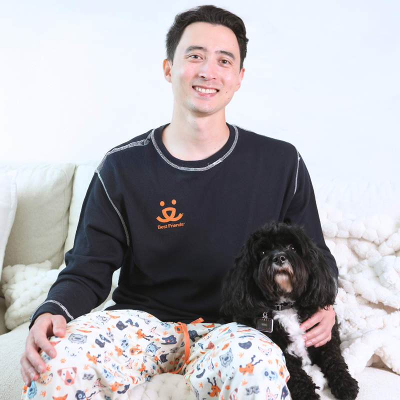 Stay warm and cozy while showing off your love for the animals in this classic thermal top. Featuring a pocket-sized Best Friends logo and an adorable furry friend dog-and-cat design down the sleeve, this piece is equal parts comfy and cute.