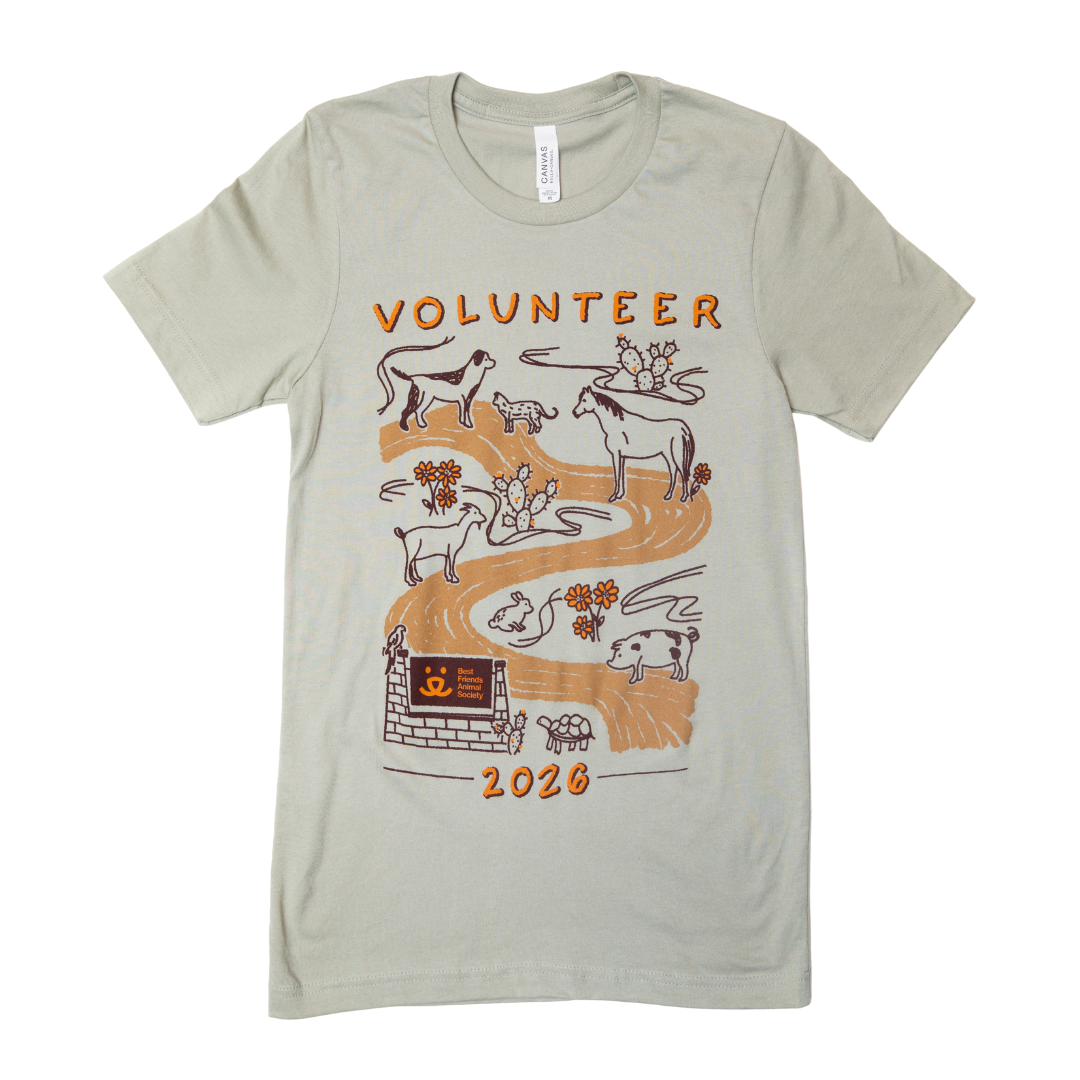 This 2026 Volunteer Tee showcases a custom desert-inspired illustration celebrating the animals and people who make our lifesaving work possible. Printed on a premium airlume combed-and-ring-spun cotton tee, it delivers a soft, lightweight feel with a flattering retail fit for all.