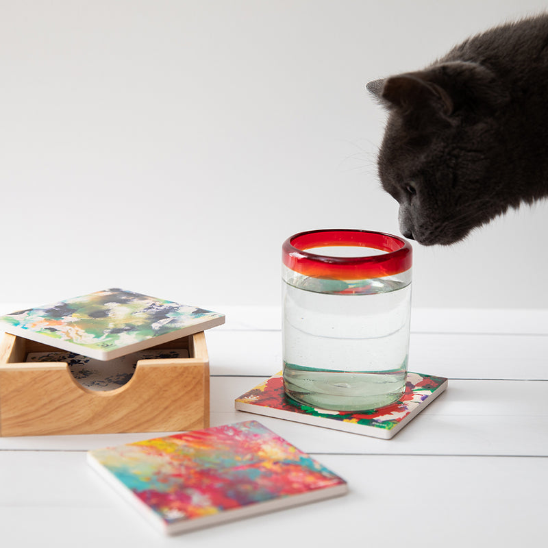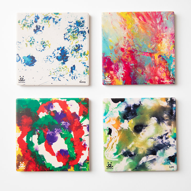 I gave the coasters to my girlfriend who is a cat lover. She was very pleased to know that the animals at Best Friends painted the coasters and that a portion of the purchase price goes to support the animals.