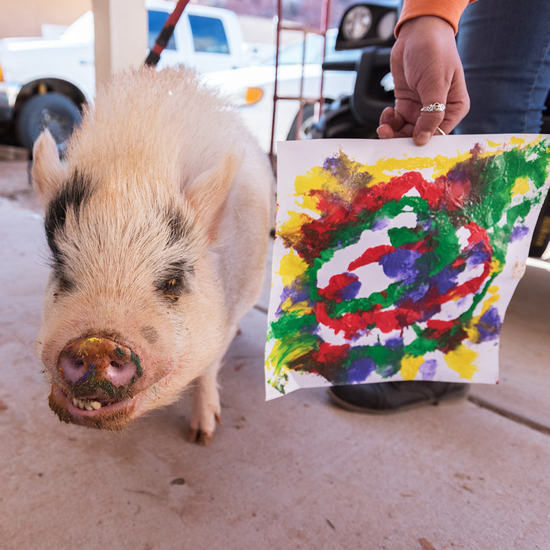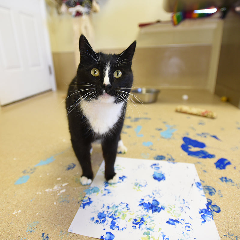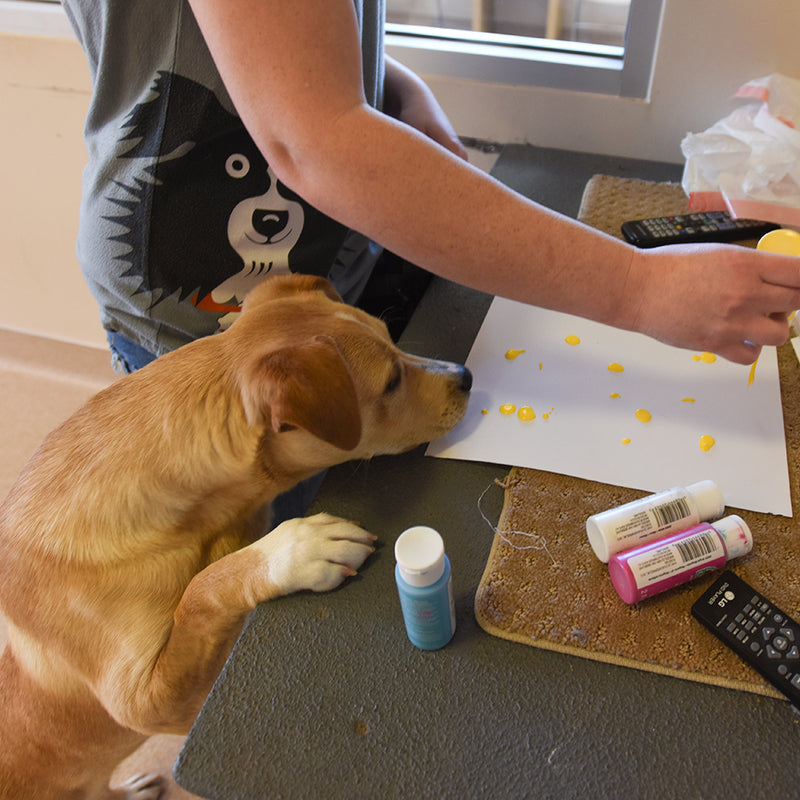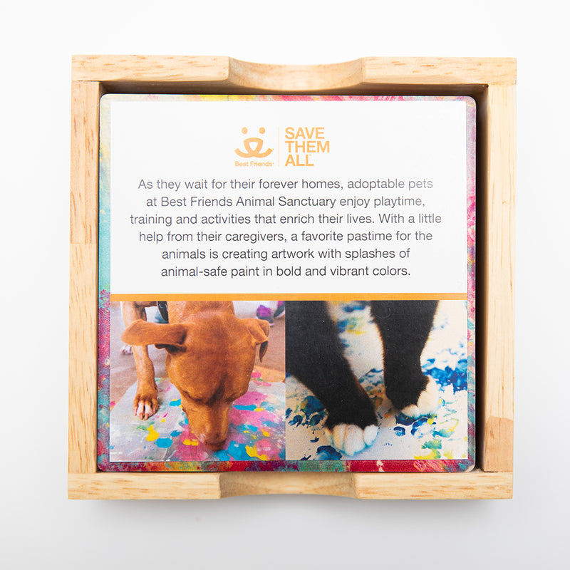 Mientras esperan un hogar definitivo, las mascotas adoptables de Best Friends disfrutan de juegos, entrenamiento y actividades que enriquecen sus vidas. Con la ayuda de sus cuidadores, uno de sus pasatiempos favoritos es crear obras de arte con toques de pintura segura para animales en colores vibrantes y vibrantes. Presume de los artistas de cuatro patas más queridos del Santuario mientras brindas por los animales y proteges tus muebles.