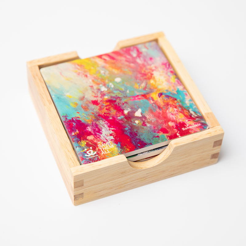The coaster set was even nicer than I expected. Great colors and I loved the enclosure that described each animal and their art. I was proud to give the set as a Christmas gift. Definitely a home run. Thank you, Best Friends!