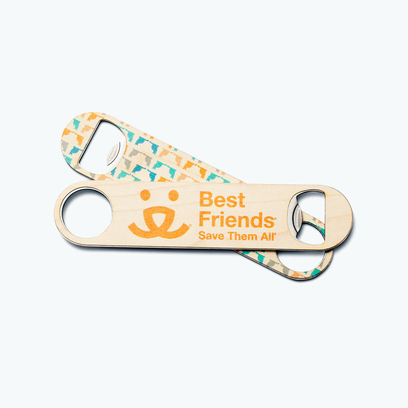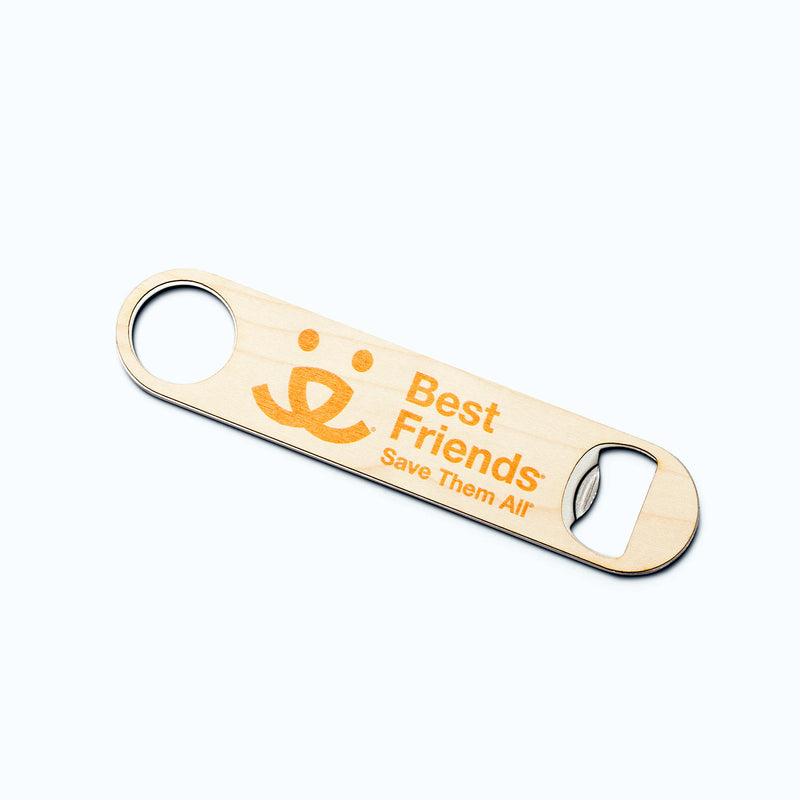 Hecho con madera de un bosque sustentable en Minnesota con un inserto de acero inoxidable, este abridor delgado es perfecto para guardarlo en su maleta para horas felices improvisadas.