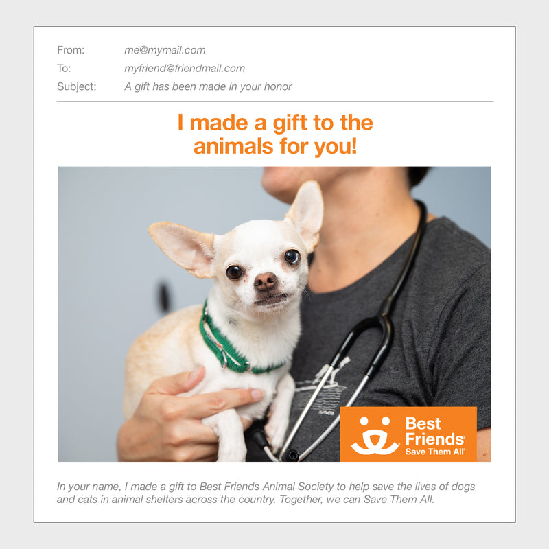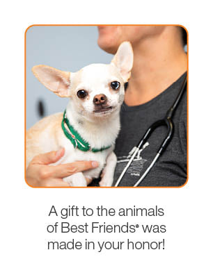 Tus donaciones del catálogo apoyan la labor de Best Friends Animal Society y ayudan a salvarlos a todos. Para ayudar al mayor número posible de animales necesitados y asegurar que tu donación sea lo más beneficiosa posible, se combinará con otras donaciones para ayudar a salvar vidas de animales.