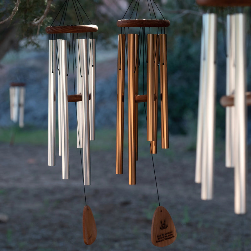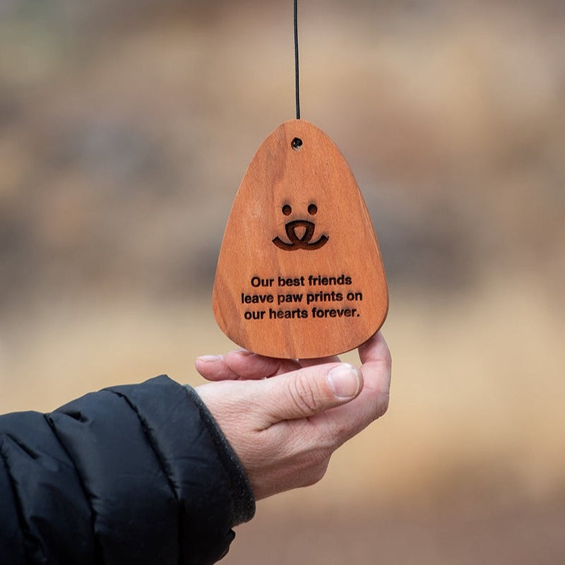 A touching remembrance for our loved ones who have passed. The soothing sounds of wind chimes can both comfort and calm a heart that is hurting. Our Memorial Wind Chimes deliver rich sound without a harsh tone; assembled with redwood for the wooden parts, this sustainable, rot-resistant wood produces calming, mellow tones. May these chimes spark fond memories of days spent outdoors with your beloved companions.