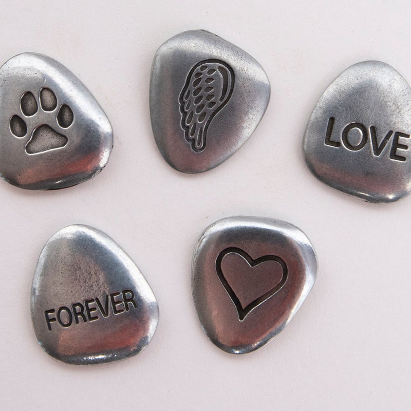 Though small in size, these pewter stones stand as a testament to the big love we have for our companion pets. They are perfect for placing on grave markers as a way to show our enduring affection.